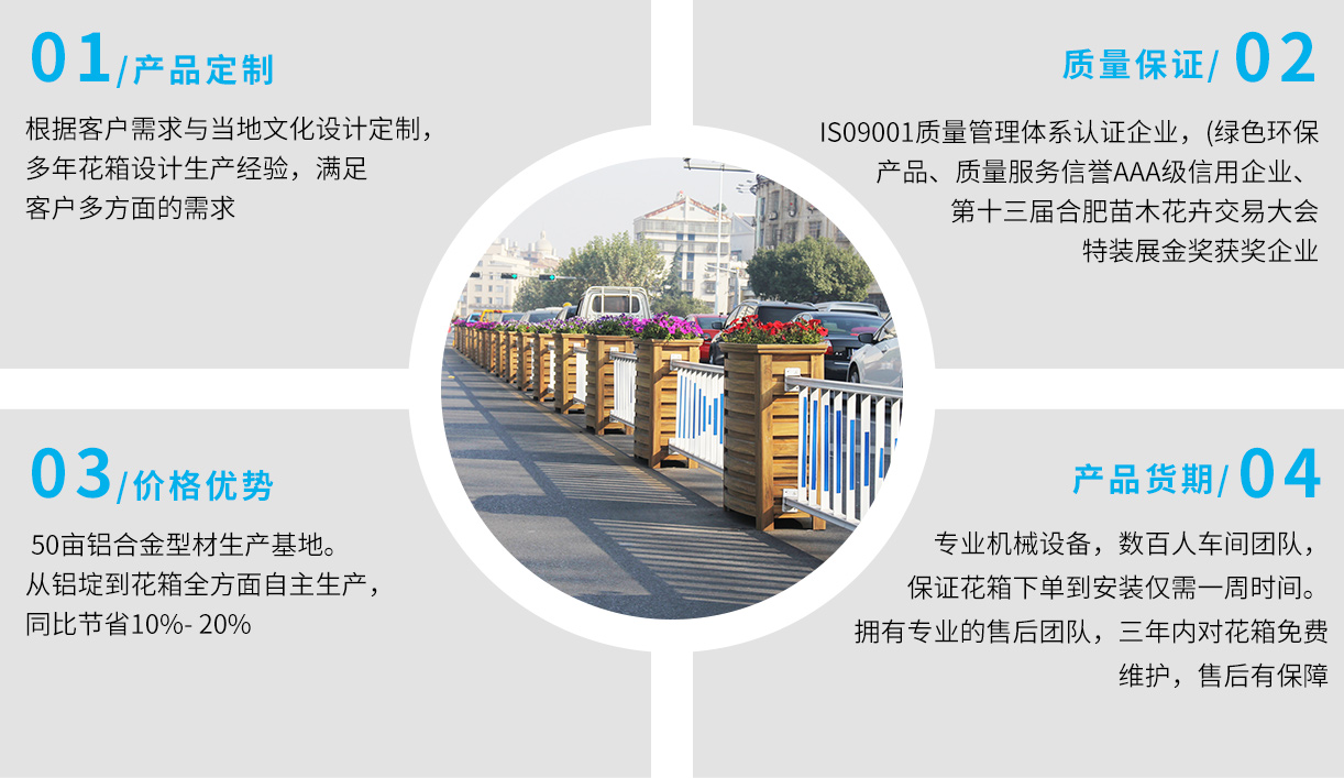 •       上海曦信環保科技股份有限公司成立于2013年,是一家專業的馬路花箱供應商。本公司自成立以來,經歷了奠定基礎,穩步發展的過程。品牌已形成市場優勢,現正處于乘勢而上發展壯大的階段。創立先進的經營理念和企業文化,生產經營規模不斷發展壯大。公司主要從事馬路花箱,花箱護欄,木紋鋁合金花箱,座椅花箱,鋁板花箱、不銹鋼花箱、鋁合金護欄、鋁合金葡萄架,公園座椅,戶外果皮箱垃圾桶、鋁合金葡萄架等金屬建材產品的生產和銷售...